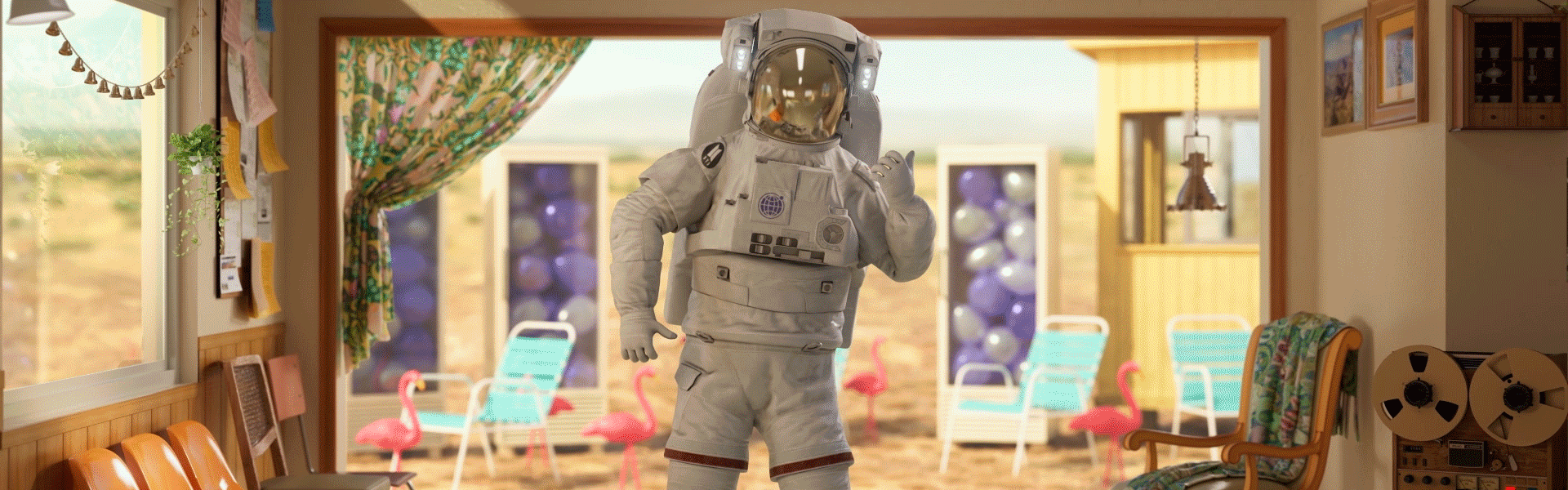 방탄소년단의 Permission to dance를 추는 우주인의 모습을 제작해 보았습니다.